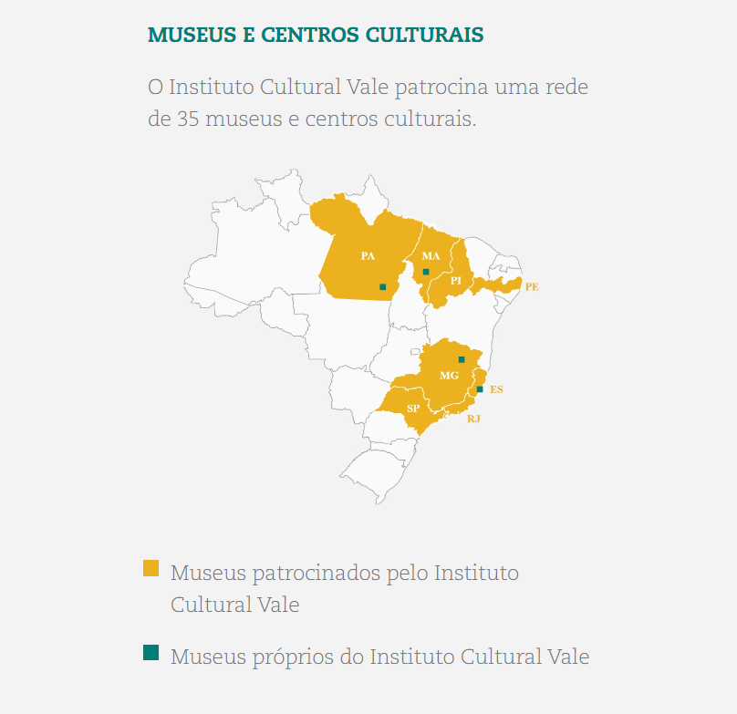 O Instituto Cultural Vale nasceu do propósito de fomentar expressões artísticas e democratizar o acesso à cultura, para que juntos possamos construir um futuro de experiências enriquecedoras. Entre as muitas iniciativas desenvolvidas por ele, está o patrocínio à museus do país inteiro, que ajudam a preservar e recontar a história brasileira.